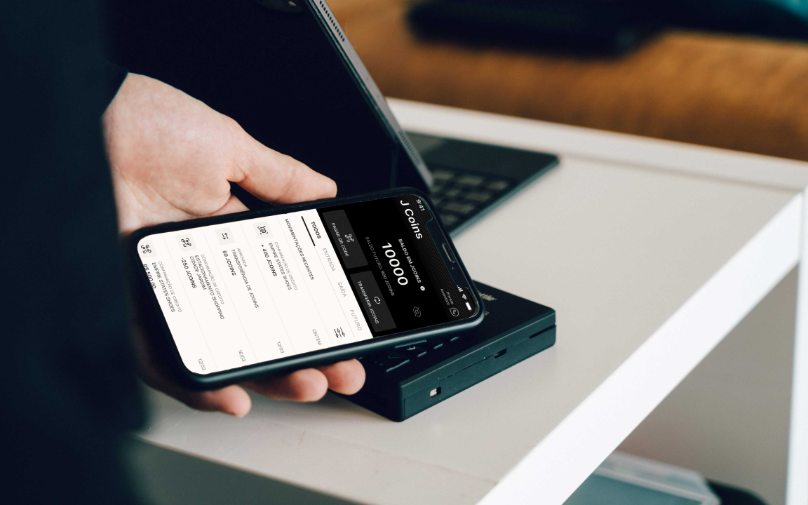 Com o uso do aplicativo JHSF ID Membership suas compras são convertidas em JCOINS, a moeda virtual do programa.